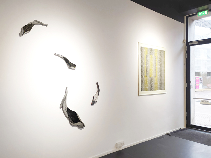 Grafiektriënnale in Konstmuseum Uppsala Zweden, op de voorgrond werk Caroline Koenders 2024